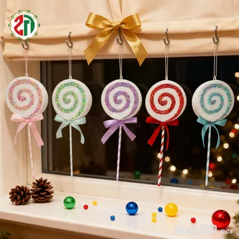 Christmas Polyfoma Peppermint Candy Lollipop Ornament Set Christmas Tree Decorations Xmas Tree Pendant for Home Party Supplies