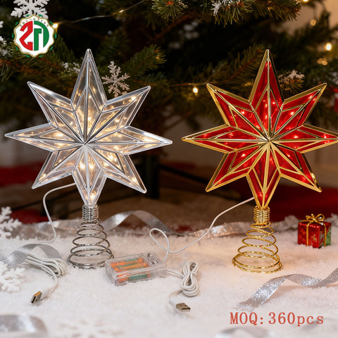 Zhengtian yıldız Glitter ağacı Topper renkli kar tanesi plastik parti ev noel süsler süslemeleri için